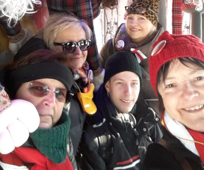 Oczywiście, skwapliwie skorzystaliśmy z okazji i zapytaliśmy, czy to przypadkiem nie one wieszają te osławione transparenty, które tak nam dodają otuchy. Najstarszy krasnolud z dumą odparł, że któż by inny jak nie one. Natychmiast przekazaliśmy im wyrazy uznania i szacunku oraz poprosiliśmy, aby nie ustawały w swoich działaniach. Pogawędziliśmy jeszcze o trudnej sytuacji, w jakiej znalazła się Polska, poczytaliśmy wspólnie konstytucję, pośpiewaliśmy (i to przy akompaniamencie instrumentów, bo w jednym z domków stało między innymi pianino), potem zrobiliśmy sobie całą serię zdjęć i rozstaliśmy się w wielkiej przyjaźni!