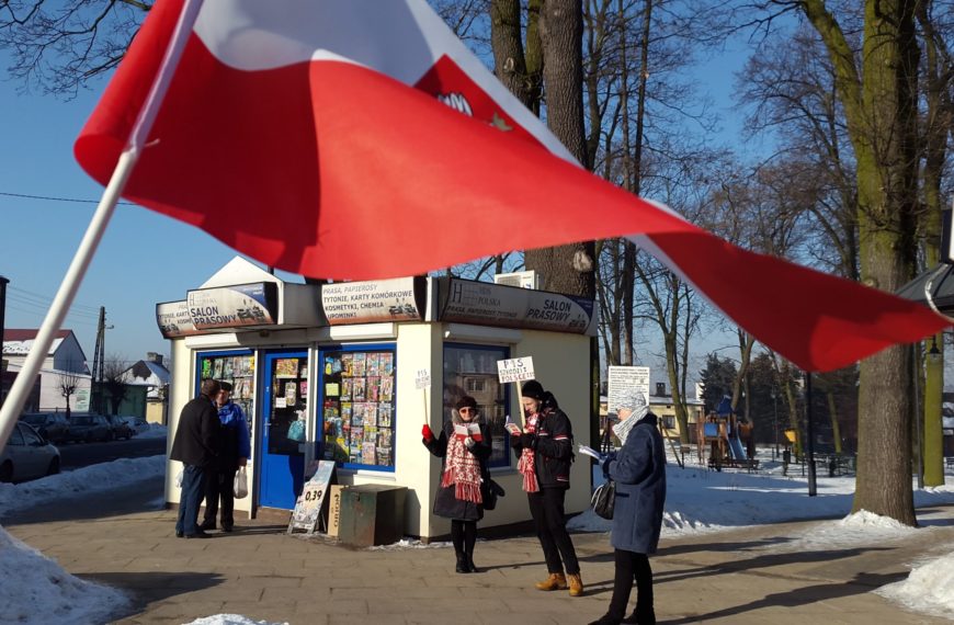 Do tego właśnie miasteczka pojechaliśmy w ostatnią sobotę, aby czytać konstytucję, rozdawać ulotki i rozmawiać z ludźmi. Wbrew naszym obawom, większość osób była do nas nastawiona przychylnie a z przejeżdżających samochodów często pokazywano nam uniesiony kciuk. Kilku kierowców specjalnie się zatrzymało, aby powiedzieć parę miłych słów i odebrać ulotki.