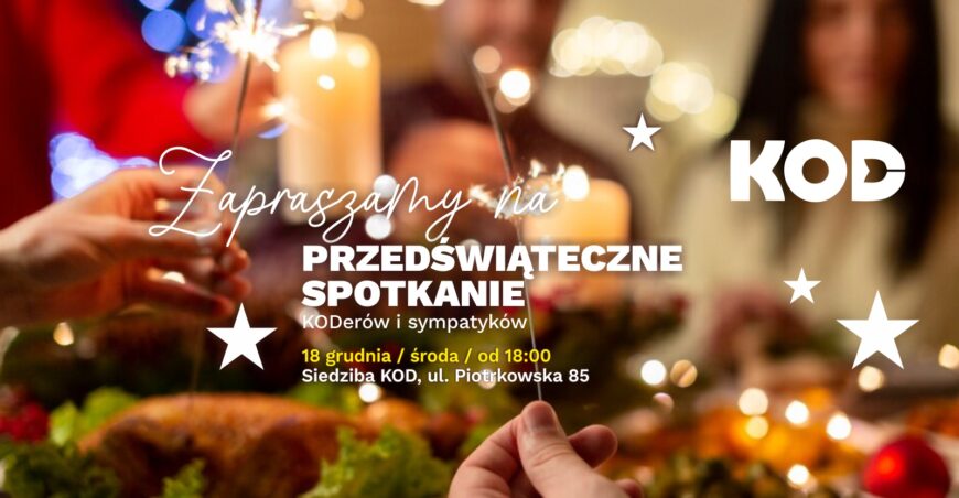 Zapraszamy Członków i Sympatyków Komitetu Obrony Demokracji na tradycyjne, przedświąteczne spotkanie. Będziemy świętowali kolejny, wspólnie spędzony rok.