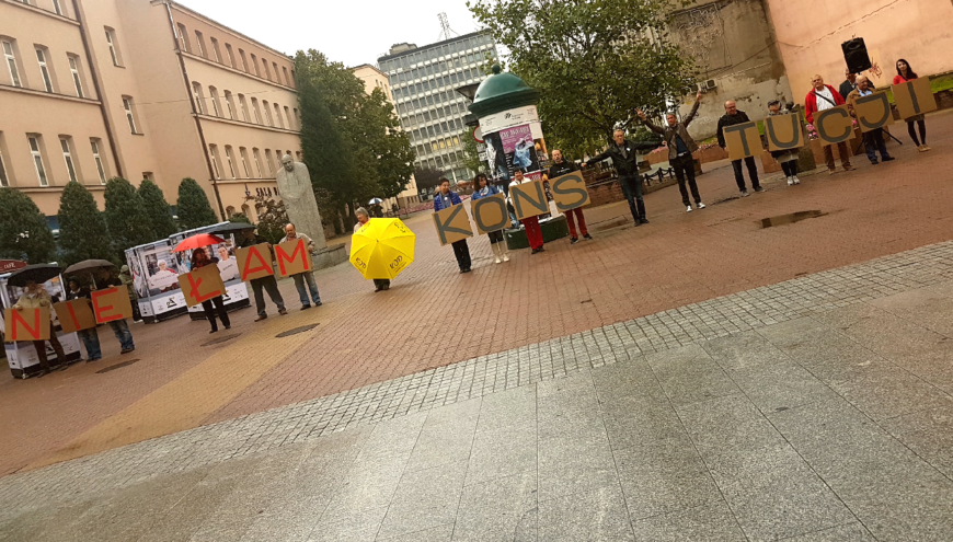 Wszystkich wątpiących zapewniam – akcja zupełnie nic nie kosztuje i jest wyjątkowo prosta, a bardzo, bardzo skuteczna: jesteśmy zauważani przez przechodniów – nawet przy tak niesprzyjającej spacerom pogodzie. Wychodzimy z hasłem, które wyprowadziło nas wszystkich na ulice wiele miesięcy temu. Z hasłem, które zawiera w sobie wszystko to, o co walczymy. Bo protesty w obronie niezależnych sądów, mądrej edukacji, wolnych mediów czy happeningi przeciw dewastowaniu przyrody w Puszczy Białowieskiej… wszystko, czym się zajmujemy mieści się w tym jednym słowie: „Konstytucja” – w zbiorze praw obywateli i obowiązków władz, których nie przestrzega rząd PiS.