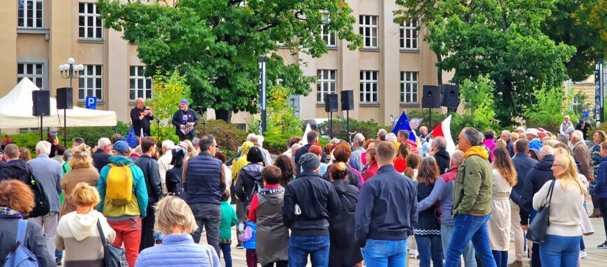 Plac Dąbrowskiego zaś wybrzmiał dziś głosem wsparcia dla Marszu. Mimo chęci nie wszyscy mogli zdecydować się na podróż do Warszawy. Potrzeba wyrażenia sprzeciwu wobec demolowaniu naszej wspólnej ojczyzny była jednak duża.
