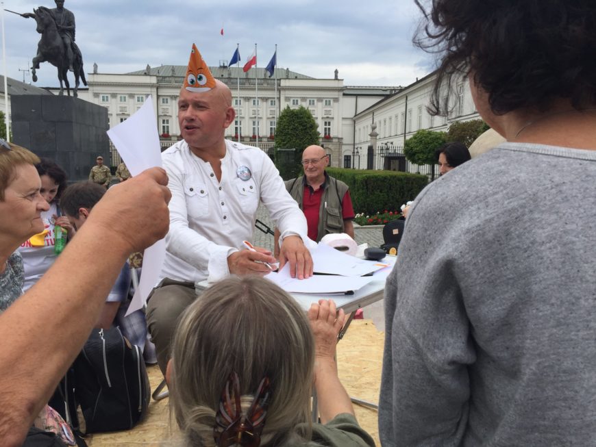 Grzegorz Antoszewski, absolutnie fantastyczny mazowszanin, wcielił się „z marszu” w rolę Adriana, KODkapela – jak to na imieninach – zaśpiewała. Zadziałał „Wszystko-podPiS Adrian”. Podpisywał wszystko. Na wszystkim. Projekt dowolnej ustawy, zaświadczenie o…, weksel in blanco, poręczenie kredytu, ułaskawienie za cokolwiek – chcesz, to masz.