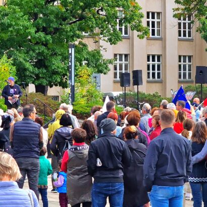 Wtorek. 14 września. Na szybko zwołana manifestacja w Pasażu Schillera… Trudny czas… Twarze pełne troski… Nie – smutne! Pełne bezgranicznej troski!… To, co dzieje się teraz w Polsce pod rządami pis, jest rzeczą rozpaczliwą! Wiem! Wiele osób zgłupiało;…