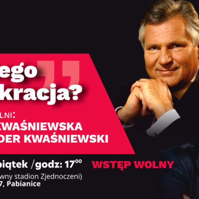 ZAPRASZAMY NA SPOTKANIE: „Dlaczego demokracja?” – Jolanta i Aleksander Kwaśniewscy – spotkanie KIEDY: 15.07 / piątek / godz. 17:00 GDZIE: PABIANICE, Zielone Błonie (dawniej stadion Zjednoczeni), ul. Żeromskiego 17 UWAGI: WSPĘP WOLNY, zapisy pod nr tel: 503-406-231 Historyczni…