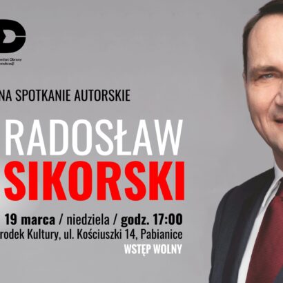 Zapraszamy na spotkanie autorskie z Radosławem Sikorskim Komitet Obrony Demokracji Region Łódzki Grupa lokalna Pabianice zapraszają 19 marca 2023 roku o godz. 17:00 na spotkanie z niezwykłym politykiem, wojownikiem o wolność i demokrację, który przywiązanie do humanistycznych wartości…
