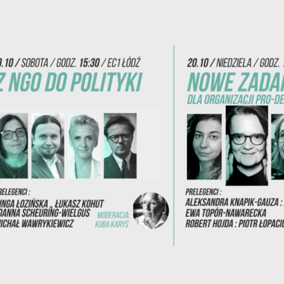 ZAPRASZAMY NA 2 PANELE DYSKUSYJNE, KTÓRYCH PARTNEREM MERYTORYCZNYM JEST KOMITET OBRONY DEMOKRACJI: NIEDZIELA, 17.09 W EC1, ŁÓDŹ GODZ. 10:00 WYBORY – PRAWO, PRZYWILEJ, OBOWIĄZEK PRELEGENCI: Agnieszka Holland – polska reżyserka filmowa i teatralna, scenarzystka filmowa i aktorka, reprezentantka nurtu…