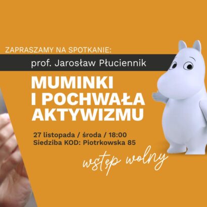 środa, 27.11. / godz. 18:00 Siedziba KOD, ul. Piotrkowska 85 Zapraszamy na spotkanie które poprowadzi profesor Jarosław Płuciennik: „Muminki i pochwała aktywizmu” Czy autorka Muminków, szwedzko-fińska malarka Tove Jansson była po prostu artystką? Jak angażowała się w sprawy…