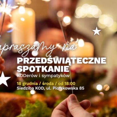 Zapraszamy Członków i Sympatyków Komitetu Obrony Demokracji na tradycyjne, przedświąteczne spotkanie. Będziemy świętowali kolejny, wspólnie spędzony rok. Szczególny dla nas, przez przeprowadzkę do nowej siedziby, radosny, bo w Polsce wolnej od antydemokratycznej PiSowskiej dyktatury. Posiedzimy przy , , ,, (każdy…