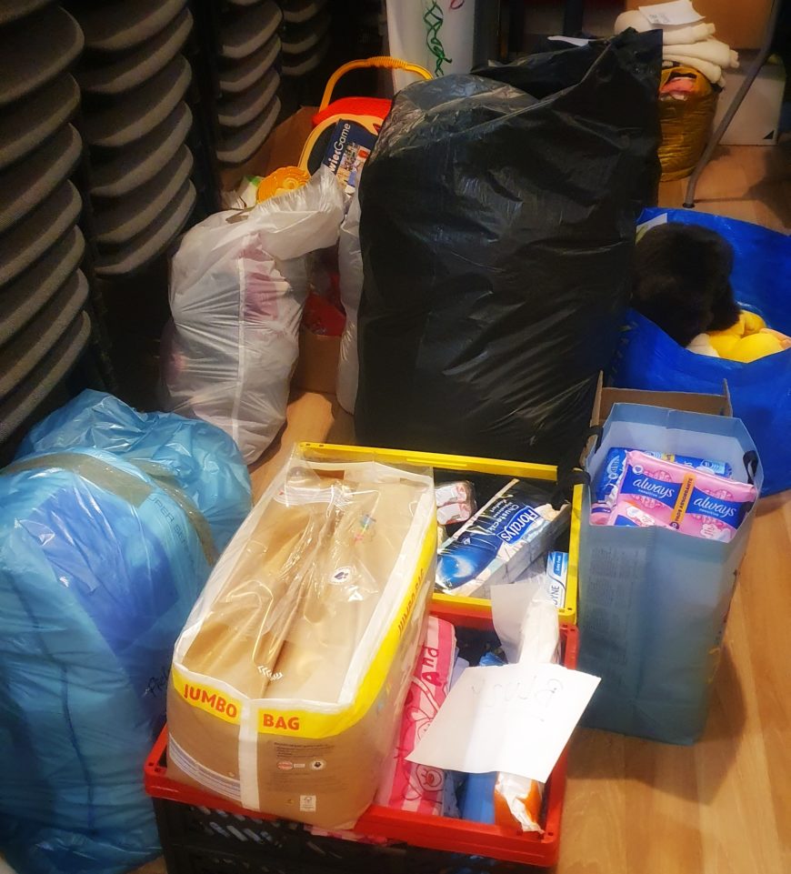 Pozostałe przyniesione przez was rzeczy są ofiarowywane potrzebującym pomocy osobom lub zawożone w miejsca, gdzie mamy sygnały o potrzebach, miedzy innymi na oddział pediatryczny do szpitala Biegańskiego, gdzie leżą chore dzieci z ukraińskich domów dziecka. A torba z medykamentami jest już zawieziona do punktu dla uchodźców przy przejściu granicznym.