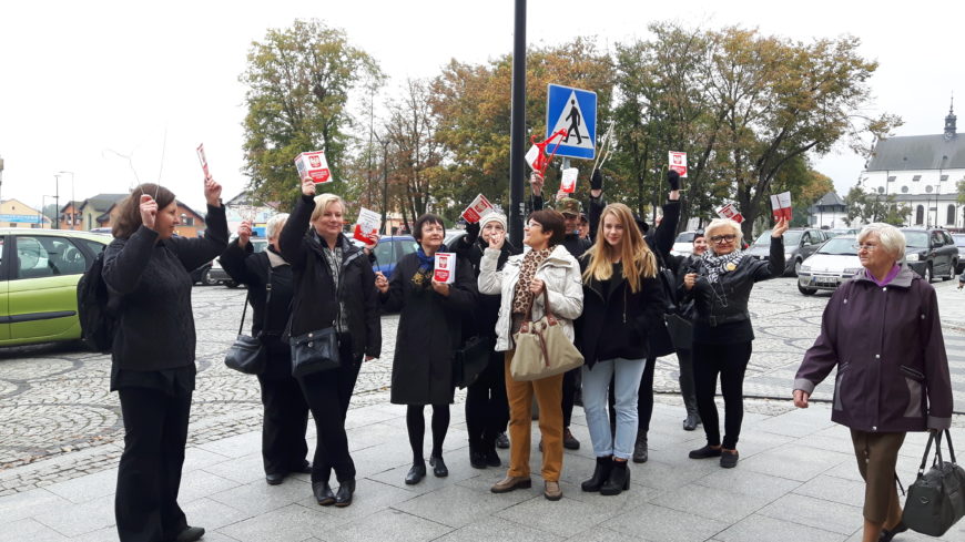 Weszliśmy w to mrowisko z flash mobem, czy raczej – jak go nazwaliśmy – Błysk Budzikiem, pierwszym w Poddębicach, w sobotę 8 października. Zanim się zaczął, już była pierwsza negatywna reakcja: „Byście się panie wstydziły”. Potem były jeszcze dwie, trzy – „Wynocha stąd”, a po akcji nawet agresja wyrażona wstecznym biegiem w aucie wobec jednej z osób rozdających ulotki.