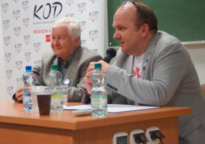Umówiliśmy się na taką formułę spotkania, w której Krzysztof odpowiadał będzie głównie na pytania zadane z sali. Kilka z nich wcześniej przygotowali sympatycy i członkowie KOD regionu łódzkiego, którzy nie mogli się pojawić na spotkaniu. Krzysztof Łoziński od połowy stycznia jest członkiem Zarządu Głównego KOD a jednocześnie obok Mateusza Kijowskiego jednym z dwóch, póki co, kandydatów ubiegających się o funkcję Przewodniczącego Zarządu Głównego KOD. Wybory przed nami, na zbliżającym się Walnym Zgromadzeniu. Nie trudno się było domyślić, że sporo pytań dotyczyć będzie stanu naszego stowarzyszenia, planów naprawczych, programu – tego, co ma do zaproponowania Krzysztof jako kandydat.