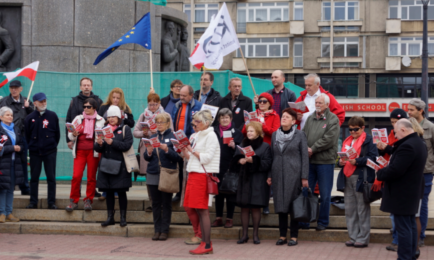 W ten niezbyt ciepły dzień, zebrało się na placu Wolności kilkadziesiąt osób.