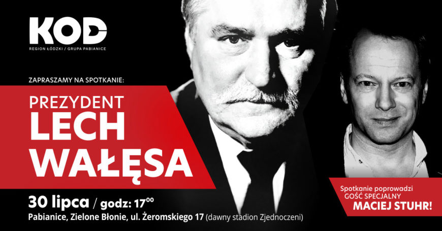 KOD łódzkie / grupa Pabianice serdecznie zaprasza na niezwykłe wydarzenie: otwarte spotkanie z Prezydentem Lechem Wałęsą.
