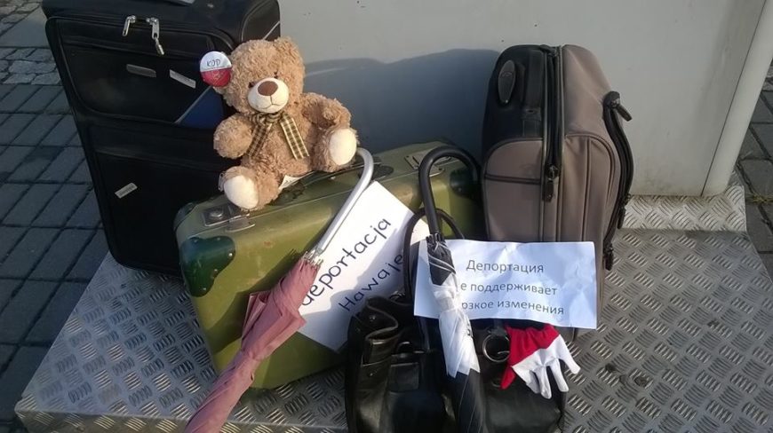 Spakowaliśmy zatem bagaże (doświadczeń, jak to określiła celnie jedna z KODerek) i stawiliśmy się na placyku pod Łódzkim Domem Kultury naprzeciwko Dworca Łódź Fabryczna. Mieliśmy kartki z miejscem docelowym, walizki, węzełki, tobołki i plecaki. Niektórzy wzięli także domowe zwierzęta (zapewne także nieprawomyślnego wyznania). Kolega wypisywał bileciki w jedną stronę, gdzie oprócz miejsca docelowego można było wpisać także powód deportacji. Niektórzy pytali „ale tylko jeden? Lub „niech pan wpisze: wszystko”. Wydaliśmy około kilkudziesięciu biletów.