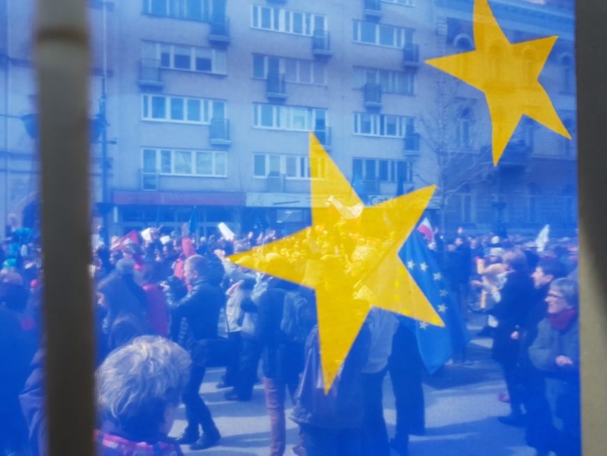 Obawialiśmy się trochę o pogodę, kapryśną w ostatnich dniach (niektórzy dobrze pamiętają poprzednią sobotę, gdy w obronie wolnych sądów i samorządów maszerowaliśmy w Warszawie w strugach deszczu). Ale tym razem pogoda nas nie zawiodła. Niezawodni, jak zawsze, okazali się też łodzianie, którzy tłumnie stawili się w umówionym miejscu. Nad głowami powiewały europejskie flagi, pojawiły się też nie wiadomo skąd niebiesko-żółte kwiaty, którymi ktoś udekorował nasze głośniki. W tłumie widziałam przedstawicieli wszystkich pokoleń – od kilkuletnich dzieci po ich dziadków i babcie. Dla każdego z nas Unia Europejska stanowi nieco inne doświadczenie – najmłodsi w ogóle nie pamiętają czasów, gdy Polski w Unii nie było. Dla nich pozycja Polski w Europie jest oczywista, może dlatego nie obawiają się o nią tak bardzo, jak ci, którzy pamiętają nieco więcej?