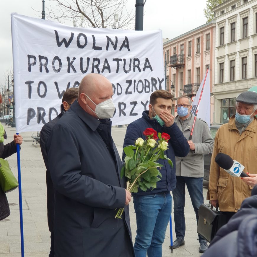 Łodzianie jak zawsze niezawodni – powitali Prokuratora kwiatami, dowodami wsparcia na plakatach i bannerach i uśmiechami. Deszcz na tę chwilę przestał padać ?