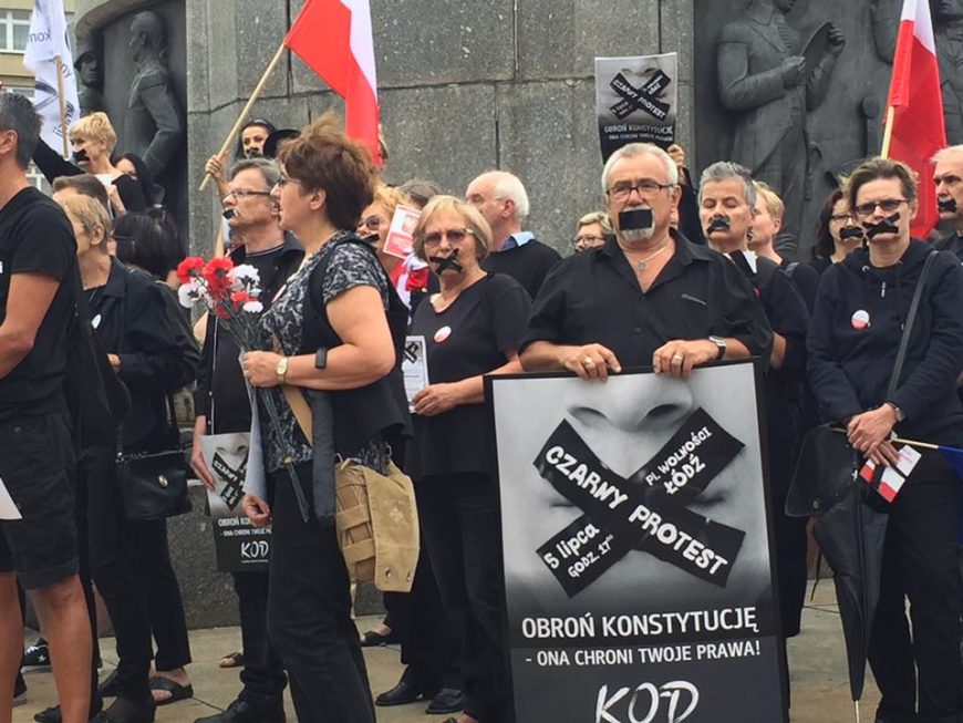 5 lipca 2016 roku na Placu Wolności w Łodzi odbył się kameralny happening łódzkiego Komitetu Obrony Demokracji. Zainspirowany pomysłem KODerów z Wrocławia, tego dnia obywatele przyszli ubrani na czarno i symbolicznie zakleili sobie usta taśmą. Były także czarne wstążki na flagach, symboliczna urna dla wolności obywatelskich i plakaty wyliczające uchybienia wolnościom obywatelskim, przeciwko którym protestujemy.