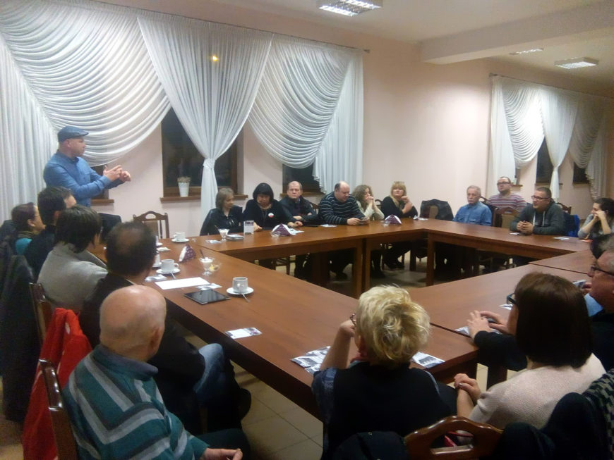 Do zorganizowania spotkania zaangażowano bardzo kontaktowe osoby z Piotrkowa co zaowocowało dobrą frekwencją. W efekcie przyszło 35 osób, chociaż nie było łatwo, aby wydarzenie w ogóle doszło do skutku. Na dzień przed miejsce zostało zmienione z powodu zastraszenia właściciela lokalu. Zagrożono mu utratą umowy, jeśli udostępni miejsce na spotkanie KODu. Opiekunowie regionów i sami piotrkowianie okazali się jednak przedsiębiorczy, zatem zebranie odbyło się w innym lokalu, w którego znalezieniu pomógł zresztą „cenzurowany” właściciel. Ledwie zaczęliśmy…pojawili się młodzi gniewni w liczbie piętnastu rozwrzeszczanych. KODerzy nie dali się jednak zakrzyczeć i zaprosili gości do dyskusji. Kilku łodzian spędziło sporą część czasu w sąsiednim pomieszczeniu na rozmowach o zdradzie narodowej, niebyciu demokratą oraz sojuszach międzypaństwowych.