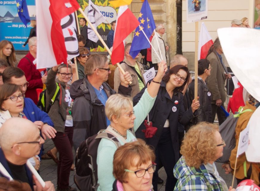 Sama nie wiem, który to już marsz. Emocje były oczywiście inne niż na pierwszym, najbardziej spontanicznym. Śmiało mogę jednak powiedzieć, że dzisiejszy marsz uważam za najlepszy. Co sprawiło, że był inny od poprzednich? Cieszył przede wszystkim brak polityków na scenie. W pierwszej części wystąpień słuchaliśmy KODerów oraz KORowców – stanęła przed nami pani Ludwika Wujec, która w prostych i pięknych słowach ukazała podobieństwo obu Komitetów. Podkreśliła, że choć działamy w innej rzeczywistości, to kierujemy się tymi samymi wartościami. Padły dziś także mocniejsze, zdecydowane słowa o konieczności odsunięcia od władzy rządu, który łamie konstytucję i narusza prawa obywateli.
