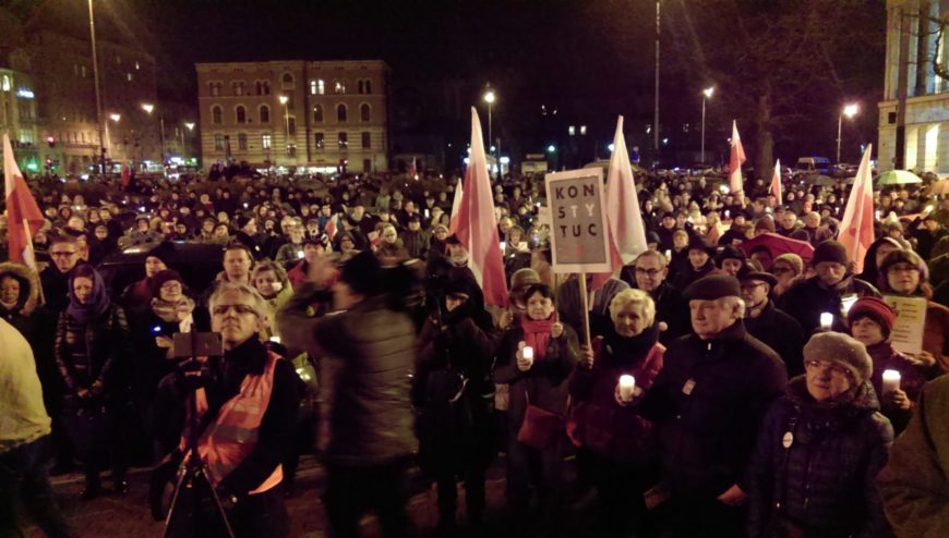 Protestowali przeciwko zmianom w Krajowej Radzie Sądownictwa. Protestowali też przeciwko pomysłom PiS na wybory samorządowe. Ich oblicza rozświetlał blask przyniesionych lampionów. Ich serca z zaangażowaniem śpiewały hymn, krzycząc wręcz, że „jeszcze nie zginęła”. Byli pełni wiary, przekonani o słuszności sprawy o którą walczą.