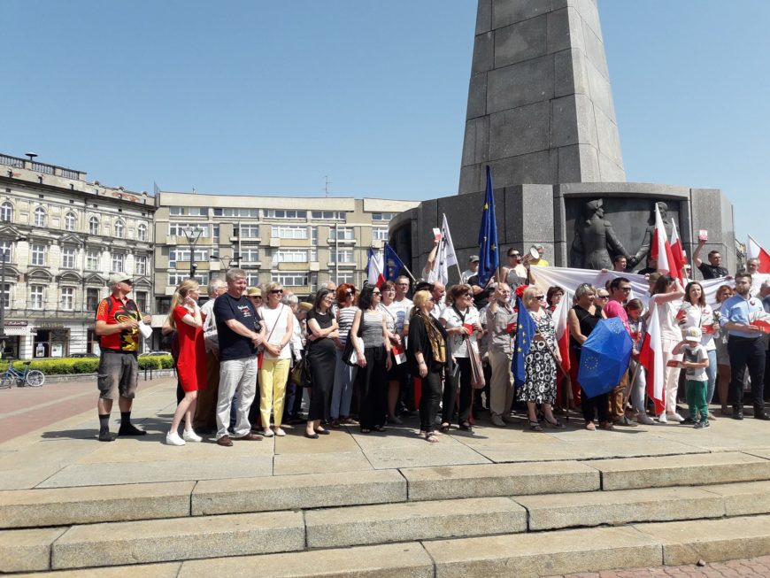 W pewnym momencie pojawiła się delegacja członków partii rządzącej. Złożyli kwiaty i znicz – sensu tego ostatniego nie byliśmy w stanie rozszyfrować, bo my nie pogrzebaliśmy jeszcze Konstytucji ani miłości do ojczyzny. Zapraszaliśmy ich do wspólnego świętowania, ale nie zareagowali. Zanim skończyliśmy śpiewać hymn (cztery zwrotki trochę trwają), już odeszli. Mieli jednak pecha, bo obok ich aut zaparkował, kłując w oczy nieprzyjemną prawdą, Liść Demokracji. Oj, nie był to łatwy dzień dla łamiących Konstytucję. Ewidentnie nie czuli się na miejscu na placu Wolności.