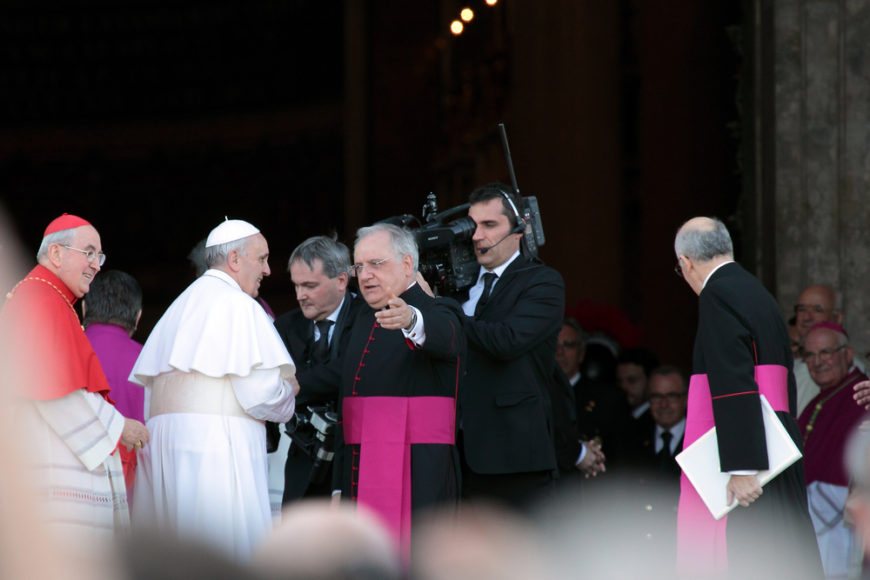 foto. Rzym, kwiecień 2007 Papież Franciszek wchodzi do Archikatedry św. Jana na Lateranie (fot. lic. Depositphotos