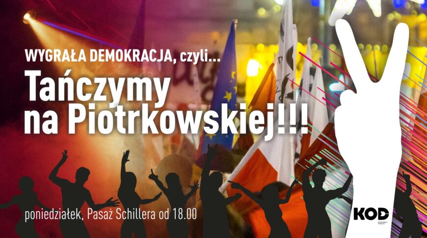 Obiecaliśmy zaprosić Was wszystkich do tańca na Piotrkowskiej, kiedy zwycięstwo demokracji nad mrocznymi rządami PiSowskiego zła stanie się faktem.