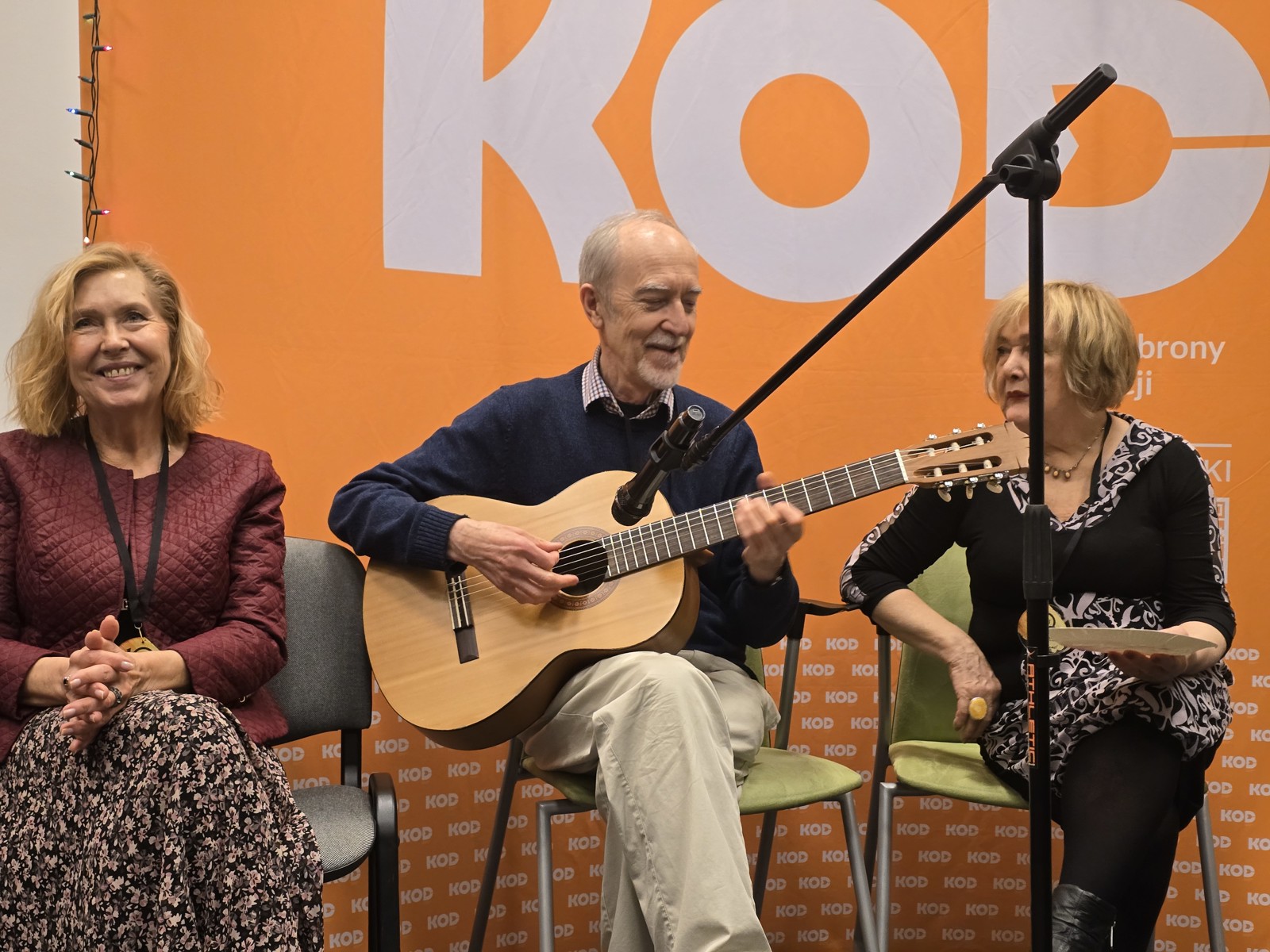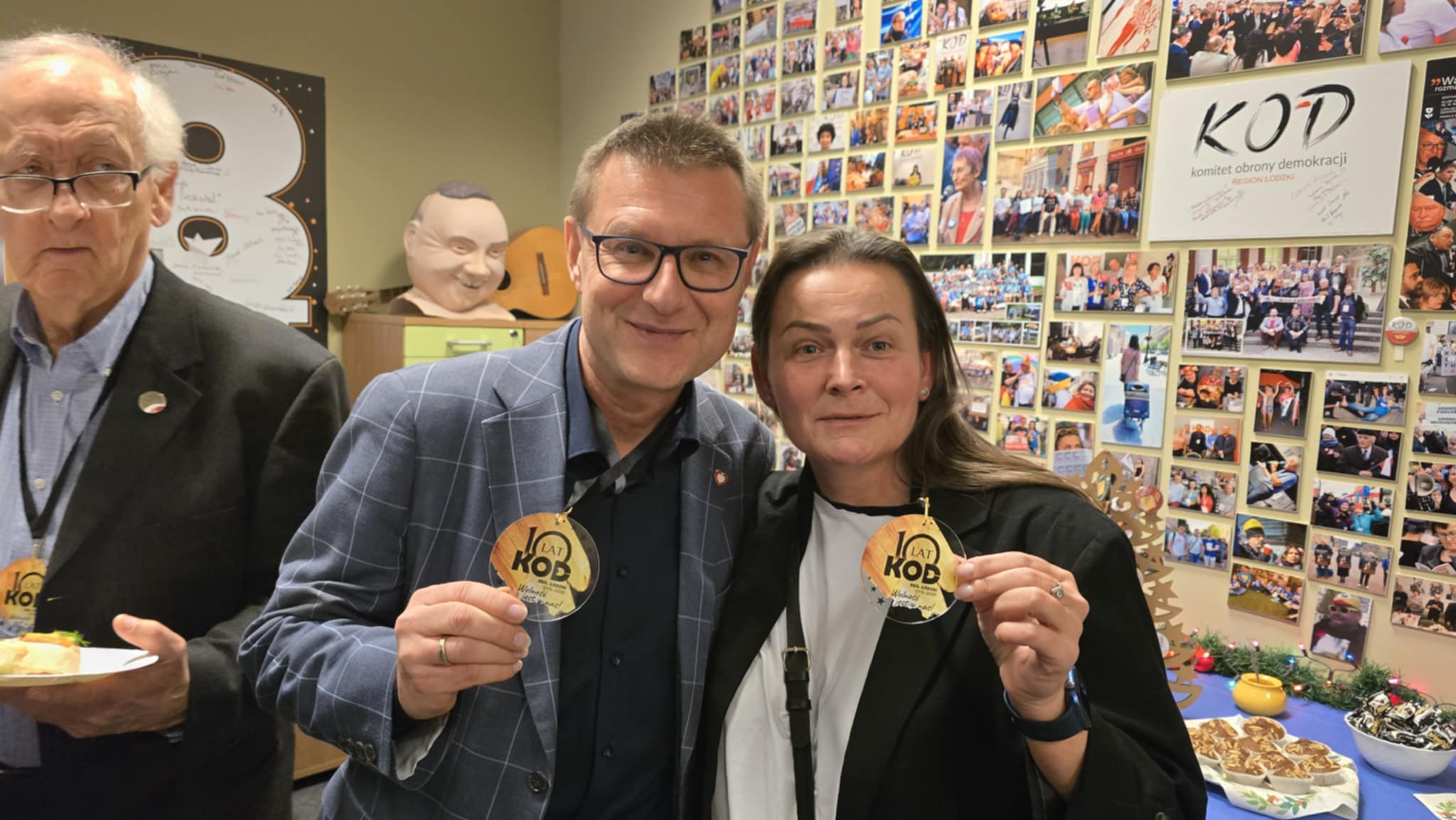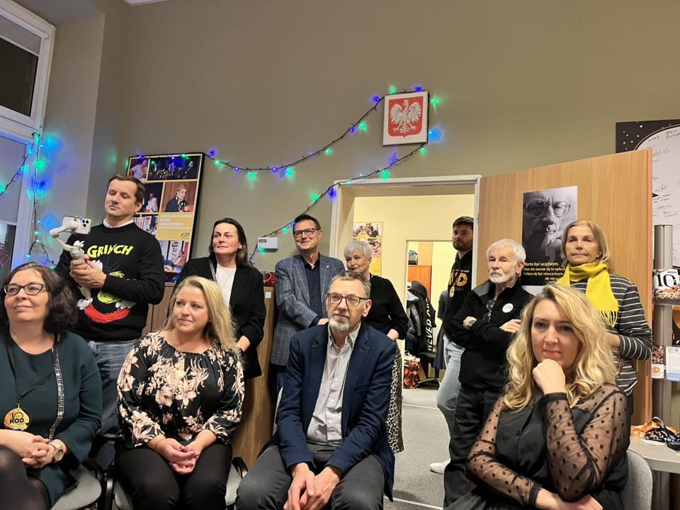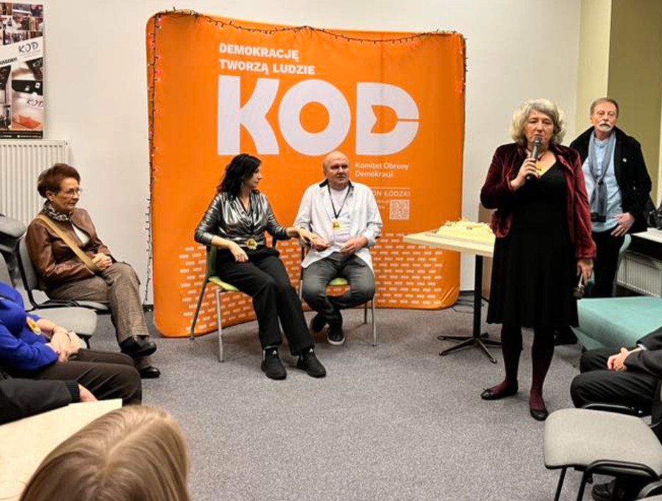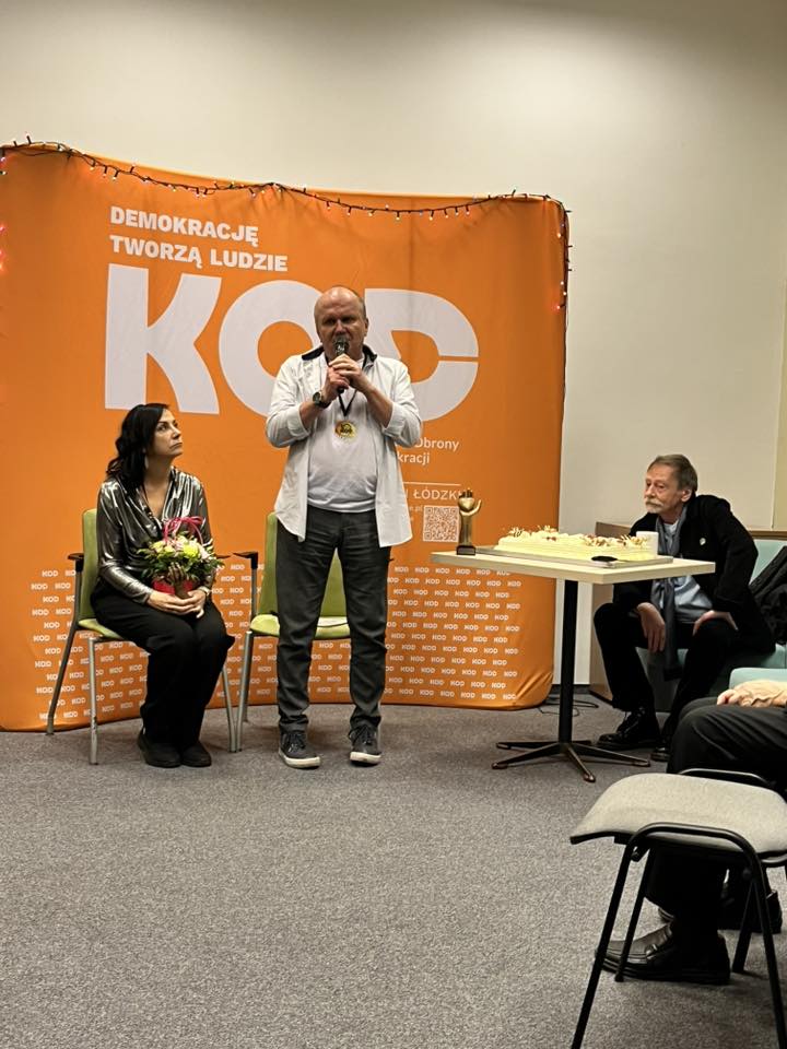 Postanowiliśmy uczcić ten jubileusz również lokalnie, stąd pomysł na połączenie tradycyjnego spotkania przedświątecznego z obchodami rocznicowymi. Część (prawie) oficjalną zaczęliśmy od podziękowania dla małżeństwa, które od 20 lat nieprzerwanie pracuje na rzecz KODu. Oczywiście chodzi o niezmordowanych i niezastąpionych Małgosię i Mirka Michalskich. Jurek Morka wygłosił na ich część piękne laudacje a senator Artur Dunin wraz z małżonką przybyli z gratulacjami (i kalendarzami). Później były śpiewy, przy akompaniamencie Lucjana Wesołowskiego z gitarą, wspomnienia, rozmowy na szczycie i praca u podstaw też. Byli ludzie, którzy są od początku i tacy, którzy trafili do KODu stosunkowo niedawno (nawet jedna zbłąkana owca wróciła na łono po kilku latach bez kontaktu).