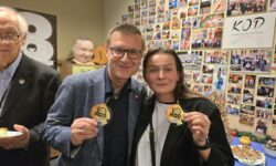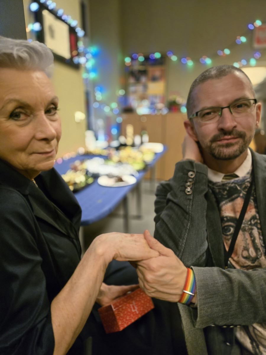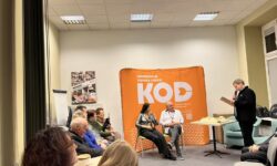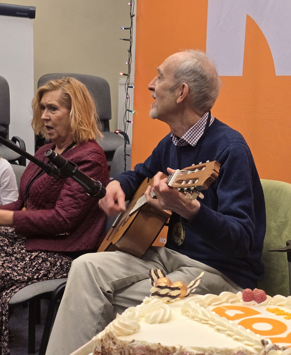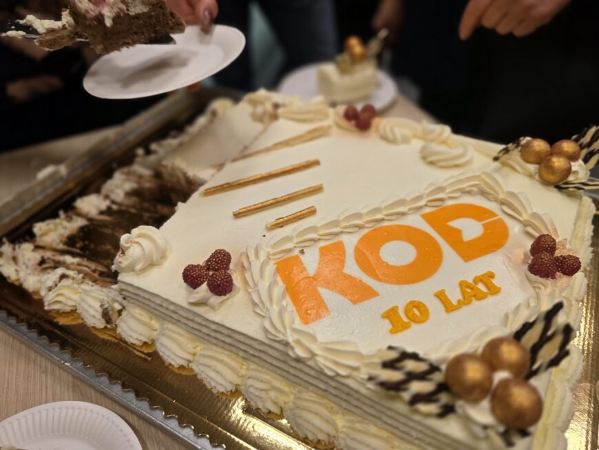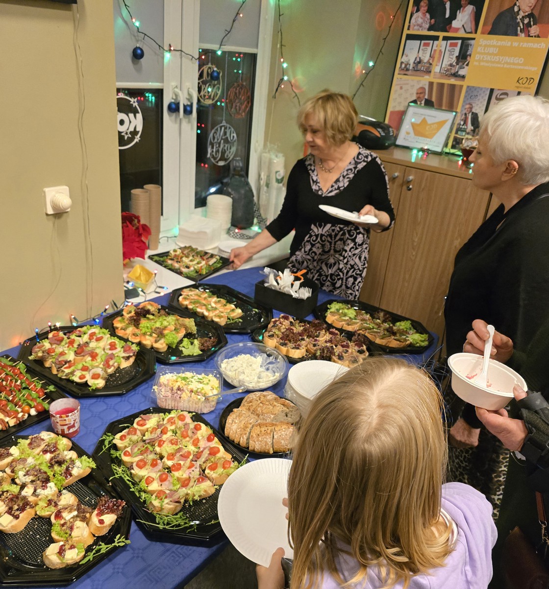Postanowiliśmy uczcić ten jubileusz również lokalnie, stąd pomysł na połączenie tradycyjnego spotkania przedświątecznego z obchodami rocznicowymi. Część (prawie) oficjalną zaczęliśmy od podziękowania dla małżeństwa, które od 20 lat nieprzerwanie pracuje na rzecz KODu. Oczywiście chodzi o niezmordowanych i niezastąpionych Małgosię i Mirka Michalskich. Jurek Morka wygłosił na ich część piękne laudacje a senator Artur Dunin wraz z małżonką przybyli z gratulacjami (i kalendarzami). Później były śpiewy, przy akompaniamencie Lucjana Wesołowskiego z gitarą, wspomnienia, rozmowy na szczycie i praca u podstaw też. Byli ludzie, którzy są od początku i tacy, którzy trafili do KODu stosunkowo niedawno (nawet jedna zbłąkana owca wróciła na łono po kilku latach bez kontaktu).