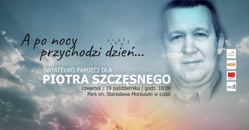 Zapraszamy na godz. 18.00 do Parku im. St. Moniuszki (na tyłach cerkwi), gdzie staraniem władz miasta, opozycji ulicznej i stowarzyszenia Nowoczesna Łódź powstało miejsce pamięci poświęcone Piotrowi. Zapalmy mu symboliczną świeczkę i wysłuchajmy w skupieniu słów jego przesłania.